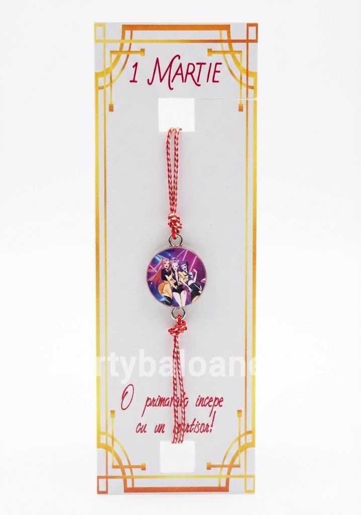 Renunță la mărțișoarele clasice și oferă-i ceva ce va purta cu mândrie la școală sau în parc. Brățara are ca element central un medalion rotund, viu colorat, ilustrând trei personaje feminine dinamice în stilul inconfundabil „Demon Hunters” K-Pop anime. Este un accesoriu plin de atitudine, care aduce o notă „cool” și energică oricărei ținute de primăvară.