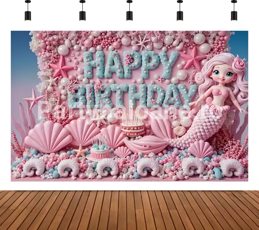 BACKGROUND TEXTIL PENTRU ARANJAMENT ARCADA – HAPPY BIRTHDAY SIRENA COD 577B