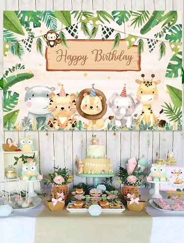 BACKGROUND TEXTIL PENTRU ARANJAMENT ARCADA ANIMALUTE SAFARI HAPPY BIRTHDAY COD 204