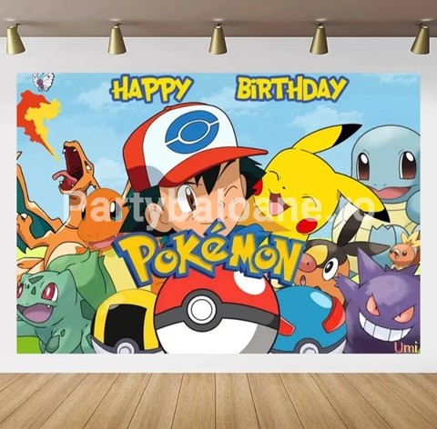 BACKGROUND TEXTIL PENTRU ARANJAMENT ARCADA HAPPY BIRTHDAY POKEMON PICKACHU – COD 340