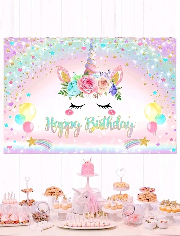 BACKGROUND TEXTIL PENTRU ARANJAMENT ARCADA HAPPY BIRTHDAY – UNICORN 150×100 CM