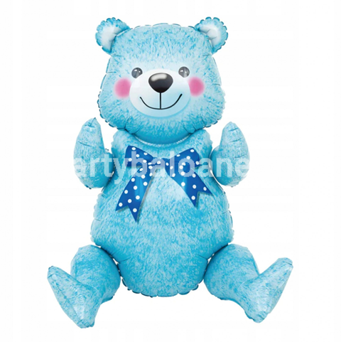 Balon din Folie Metalizata, Figurina Animalute, Model Ursulet Asezat, Tematica Aniversare, 44×82.5 cm, Ambalaj Individual, Pai Inclus, Umflare cu Aer , Albastru