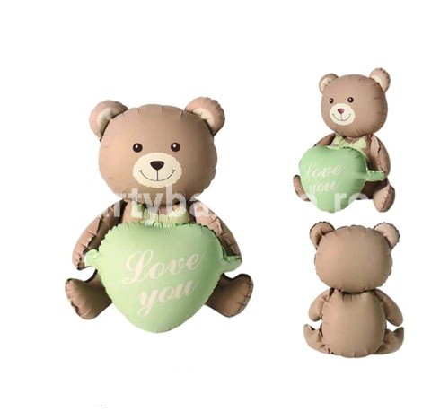 BALON FOLIE URSULET 3D CU INIMA VERDE – 105×66 CM