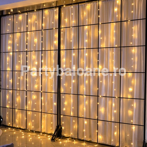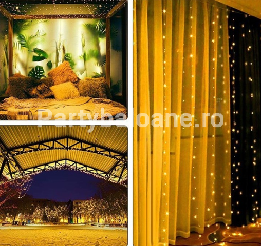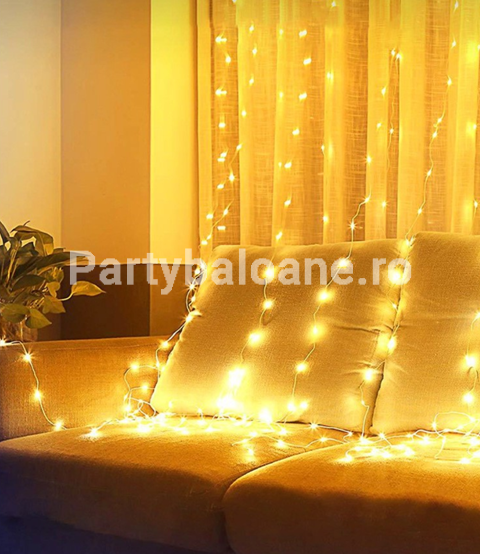 Instalatie Tip Perdea IP44, 3m x 2m, 200 Led-uri, Alb cald, USB si telecomanda cu 8 functii