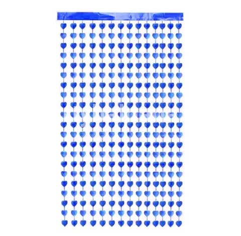 PERDEA DECORATIVA PARTY , INIMI ALBASTRE – 1×2 METRI Perdelele tip tinsel se utilizeaza pentru decorul de candy bar, photo corner, petreceri, nunta, botez, etc. Reprezinta un mod rentabil pentru un decor inedit, creează acea atmosferă plină de farmec și luxuriantă pe care toată lumea o iubește. Sunt ușor de tăiat la dimensiuni după cum va este necesar, se lipeste partea de sus a perdelei cu bandă adezivă. Continut – 1 buc Inaltime – 2 m Latime – 1 m Material – folie
