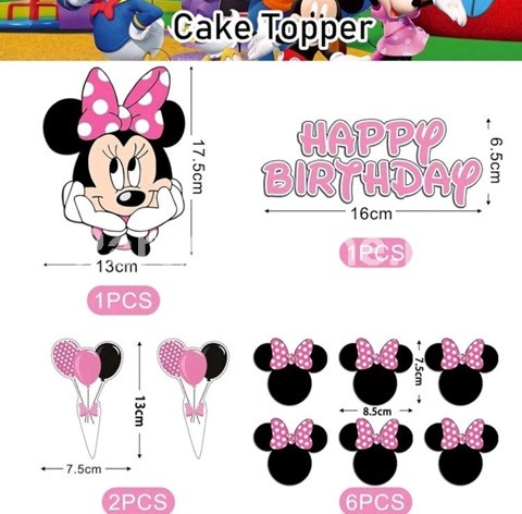 SET 10 TOPPERE PENTRU TORT – MINNIE DIMENSIUNI INTRE 7,5 CM SI 17,5 CM MATERIAL CARTON