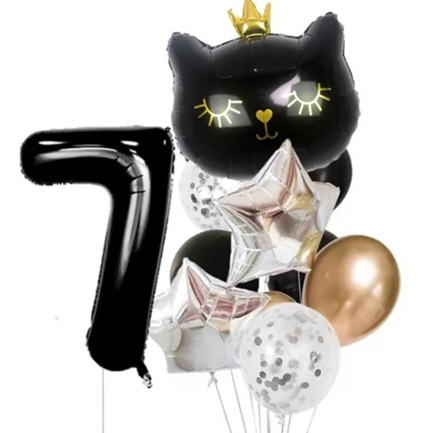 Set 11 baloane folie si latex cu cifra 7 – Pisica neagra