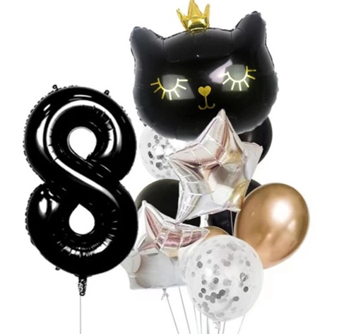 Set 11 baloane folie si latex cu cifra 8 – Pisica neagra