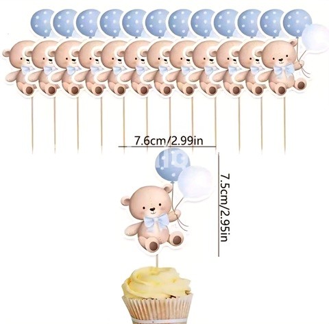 SET 12 SCOBITORI DECORATIVE – URSULET ALBASTRU CU BALOANE
