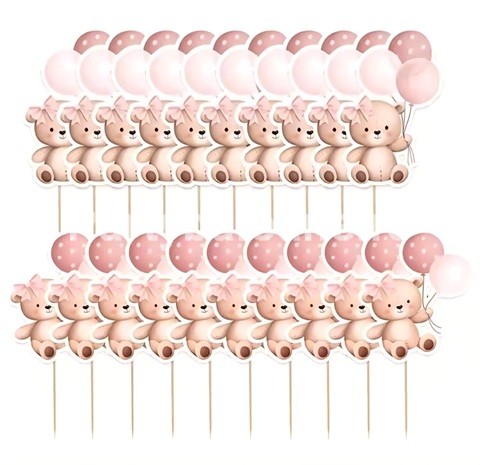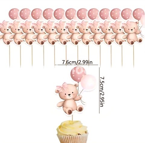 SET 12 SCOBITORI DECORATIVE – URSULET ROZ CU BALOANE