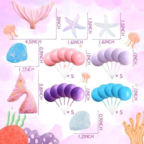 SET 26 TOPPERE 3D PENTRU TORT – COZI DE SIRENA , SCOICI , STELE SI BILE