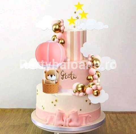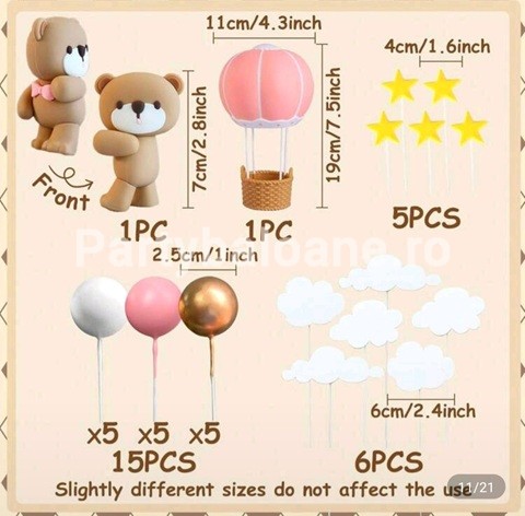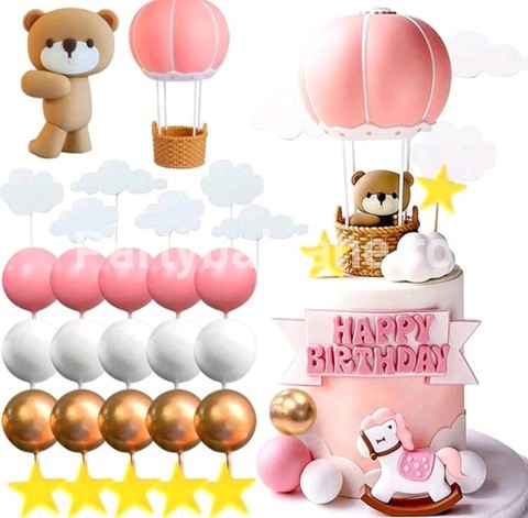 SET 28 DE TOPPERE 3D PENTRU TORT CU URS ROZ , BILE , BALON CU AER CALD , NORI , STELE TOP 90