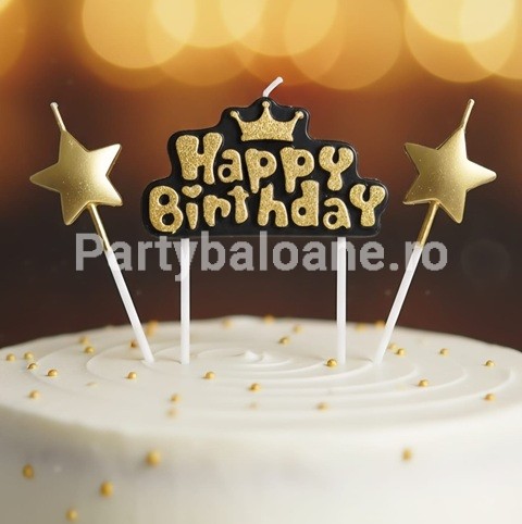 SET 3 LUMANARI TORT – HAPPY BIRTHDAY SI STELE AURII