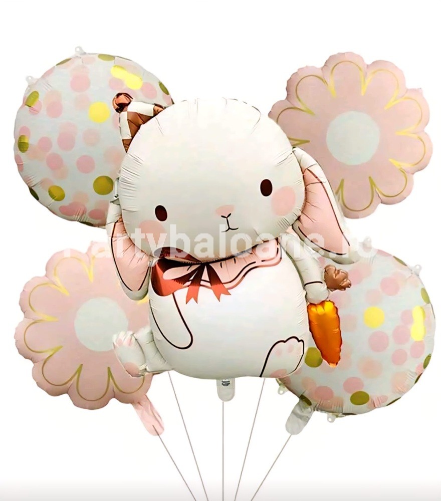SET 5 BALOANE FOLIE CU FLORI SI IEPURE