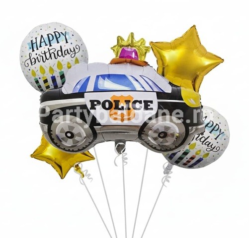 SET 5 BALOANE FOLIE , HAPPY BIRTHDAY – MASINA POLITIE