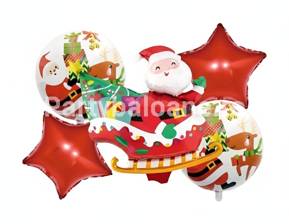 SET 5 BALOANE FOLIE MOS CRACIUN COD C20 MOS CRACIUN 65 CM 2 BALOANE STEA 45 CM 2 BALOANE ROTUNDE 45 CM BALOANELE SE LIVREAZA NEUMFLATE BALOANELE SE POT UMFLA CU AER SAU CU HELIU BETELE CU ROZETA NU SUNT INCLUSE