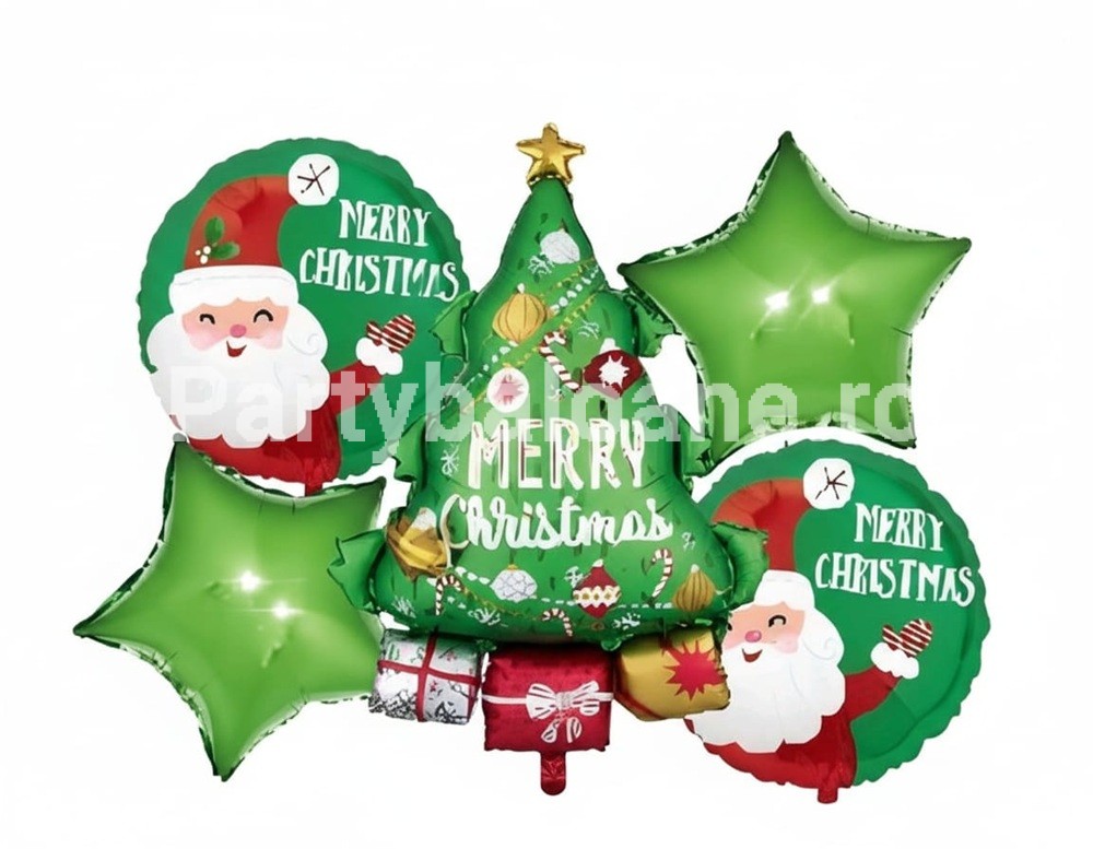 SET 5 BALOANE FOLIE MOS CRACIUN COD C22 BRAD 78 CM 2 BALOANE FOLIE STEA 45 CM 2 BALOANE ROTUNDE 45 CM BALOANELE SE LIVREAZA NEUMFLATE BALOANELE SE POT UMFLA CU AER SAU CU HELIU BETELE CU ROZETA NU SUNT INCLUSE