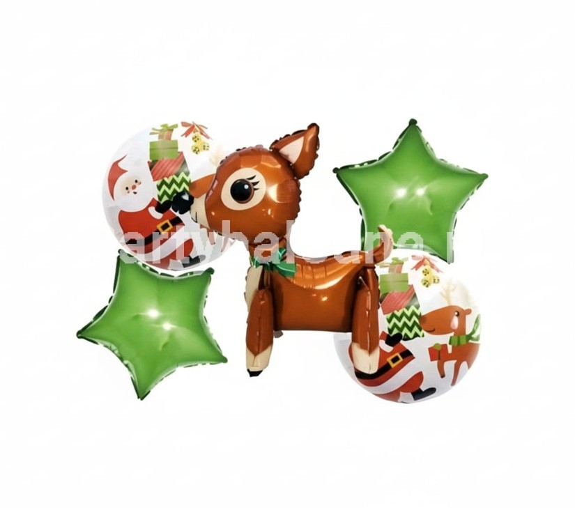 SET 5 BALOANE FOLIE MOS CRACIUN COD C25 REN 3D 58 CM 2 BALOANE FOLIE STEA 45 CM 2 BALOANE ROTUNDE 45 CM BALOANELE SE LIVREAZA NEUMFLATE BALOANELE SE POT UMFLA CU AER SAU CU HELIU BETELE CU ROZETA NU SUNT INCLUSE