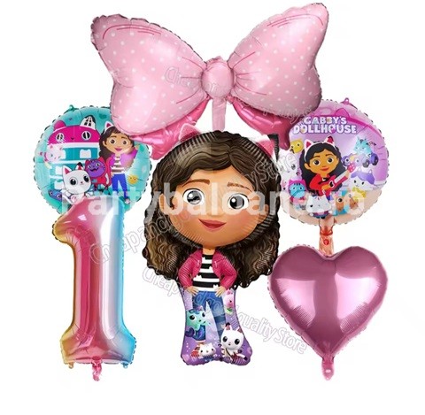 SET 6 BALOANE FOLIE CASA DE PAPUSI A LUI GABI CU CIFRA 1