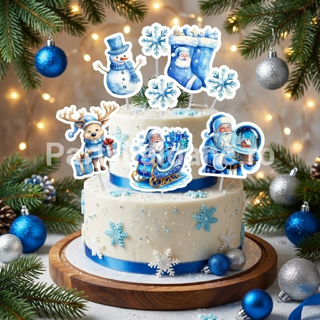 SET 8 TOPPERE ALBASTRU PENTRU TORT TEMATICA CRACIUN