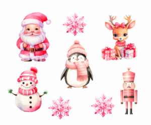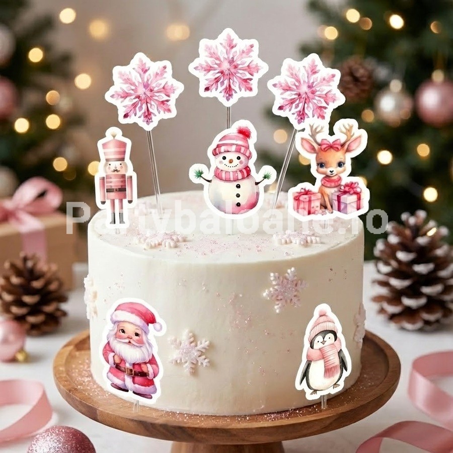 SET 8 TOPPERE ROZ PENTRU TORT TEMATICA CRACIUN
