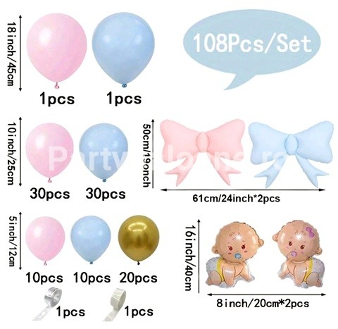 SET ARANJAMENT BALOANE – GENDER REVEAL BOY OR GIRL CU FUNDITE SI BEBELUSI SETUL INCLUDE BANDA FLEXIBILA PENTRU FORMAREA GHIRLANDEI 5 METRI BULINE ADEZIVE 2 BALOANE LATEX 45 CM BLEU SI ROZ 100 BALOANE LATEX IN NUANTELE – ROZ,BLEU,AURIU 25 CM SI 12 CM 2 BALOANE FOLIE BEBE BAIAT SI BEBE FATA 43×20 CM 2 BALOANE FOLIE FUNDA ROZ SI BLEU 61×50 CM BALOANELE SE LIVREAZA NEUMFLATE PANOURILE ,FRUNZELE , SCRISUL , PERDELELE SI CUBURILE NU SUNT INCLUSE SI SUNT FOLOSITE PENTRU PREZENTAREA PRODUSULUI