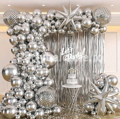 SET GIRLANDA CU BALOANE ARGINTIU CHROME CU BALOANE DISCO SI STELE 4D COD 505
