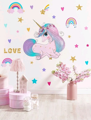 STICKER DECORATIV PENTRU PERETE – UNICORN LOVE DIMENSIUNE 91x81CM MATERIAL PVC STICKERELE SE POT REPOZITIONA STICKERELE SUNT TIP AUTOCOLANT, AUTOADEZIVE , SE POT LIPI PE ORICE SUPRAFATA DREAPTA