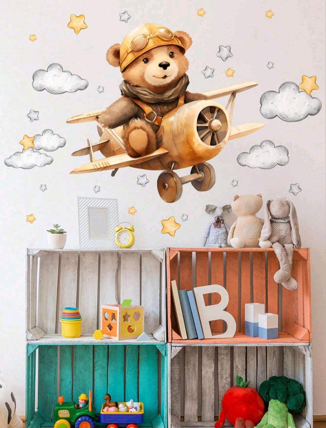 Sticker decorativ pentru perete -Urs in avion cod 331