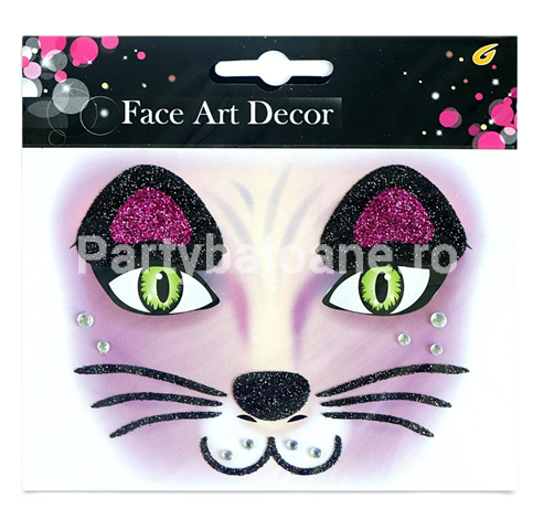 Sticker Temporar pentru Fata, pentru Machiaj, Face Art, Halloween, Teatru, Model Pisica, Mov
