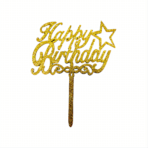 TOPPER PENTRU TORT , LEMN , AURIU CU STEA – HAPPY BIRTHDAY 15 CM