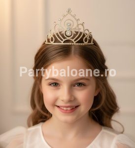 👑 Coroniță decorativă aurie cu cristale – 14 cm diametru