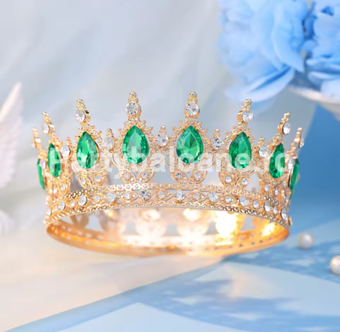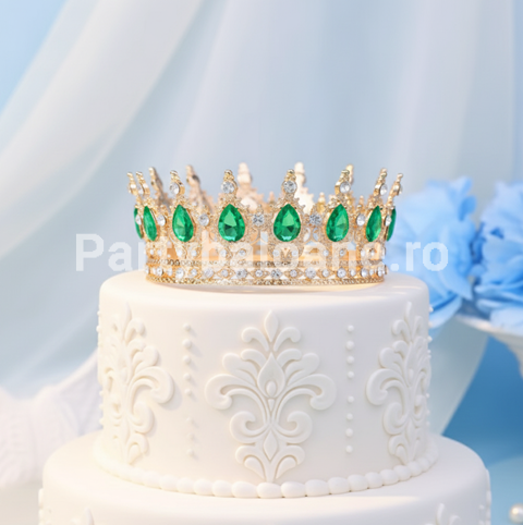 TOPPER TORT – CORONITA AURIE CU PIETRE PRETIOASE VERZI , 15 CM