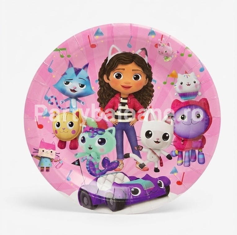 Pregătește o petrecere „a-miauzing”! Alege setul de 10 farfurii mici (18cm) pentru tort cu Gabby’s Dollhouse (Casa de Păpuși a lui Gabi). Design roz vibrant. Comandă decorul perfect!