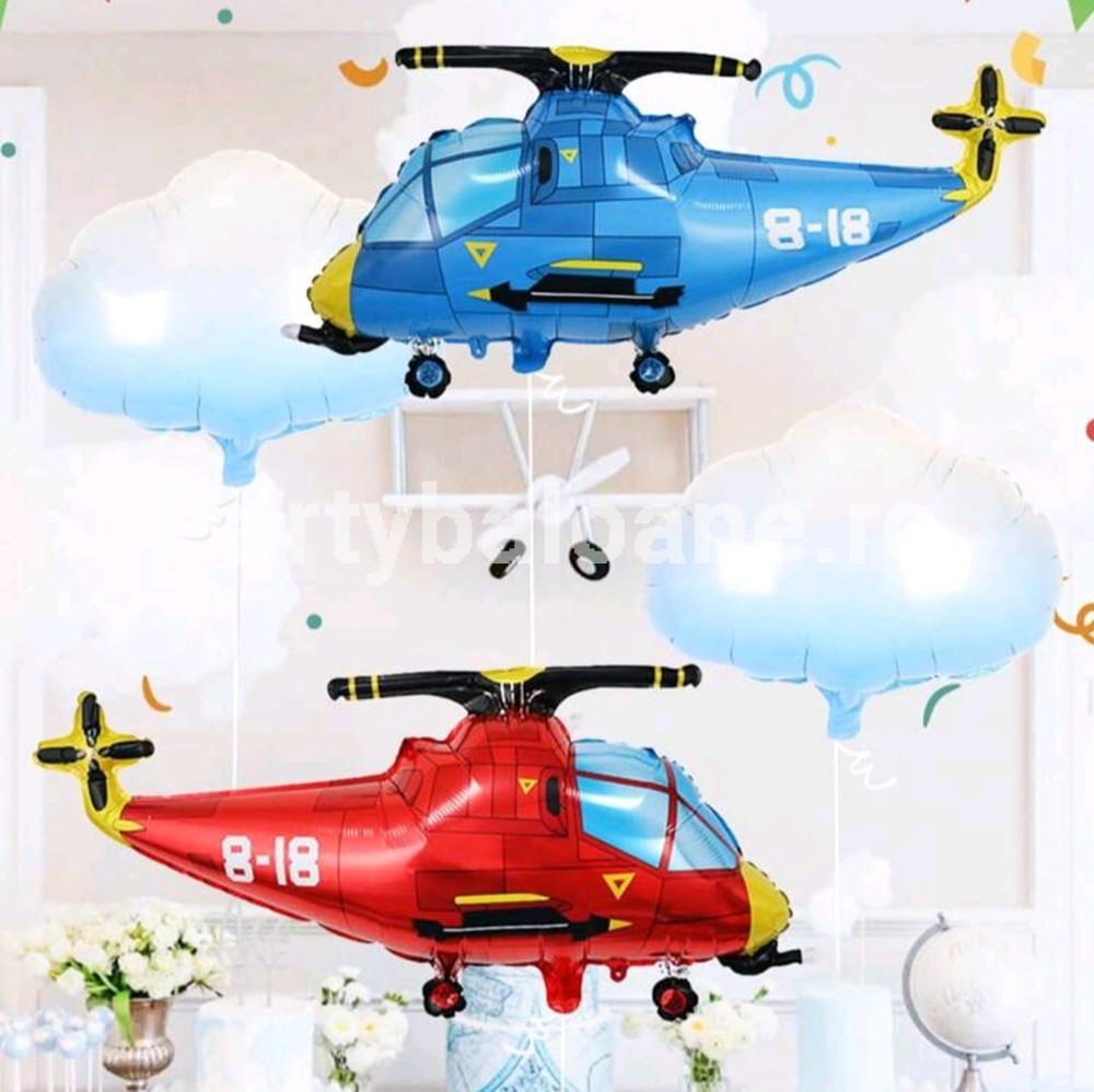 Varianta Plutitoare (Heliu): Datorită dimensiunilor mari și materialului din folie rezistentă, elicopterele și norii arată spectaculos umflate cu heliu, plutind deasupra mesei de candy bar sau la intrarea în petrecere.