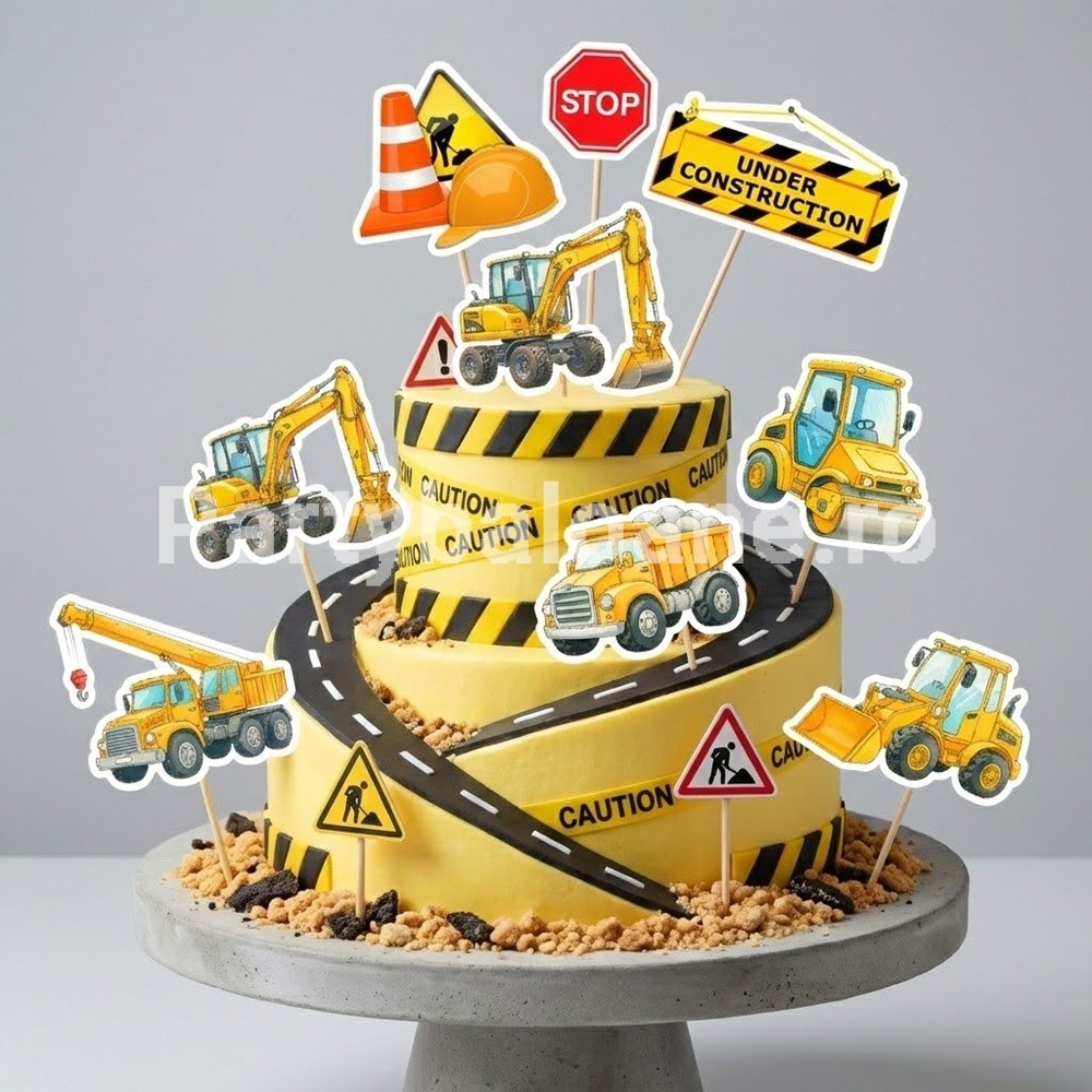 Comandă acum setul complet de toppere „Șantier în Lucru” și construiește o aniversare de neuitat pentru micul tău inginer!